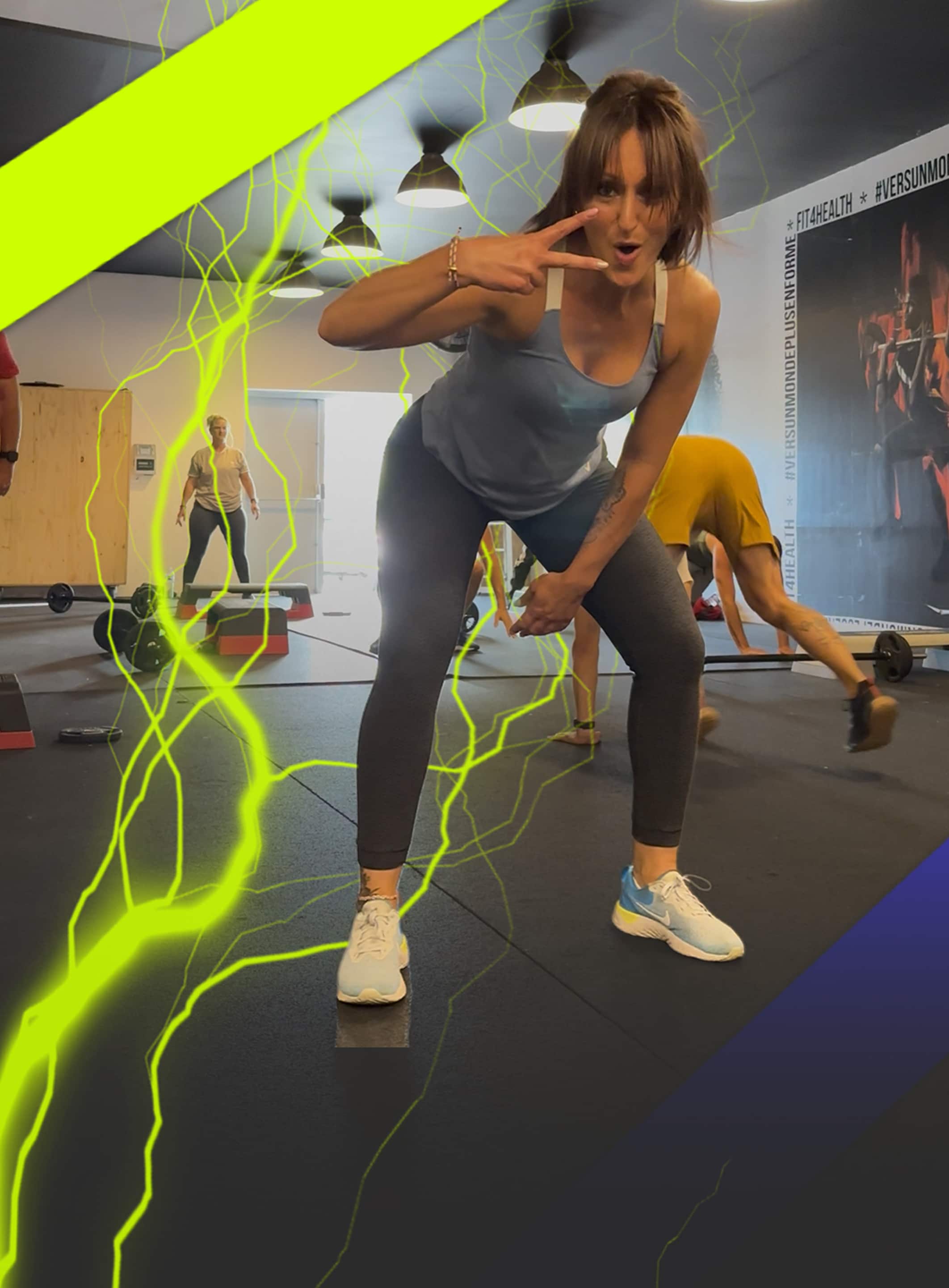 Équipement : barre, poids, haltères, box jump, step, tapis, cordes ondulatoires & autres équipements (selon le cours).